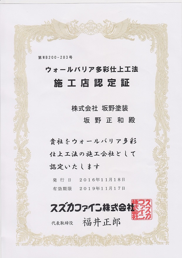 当社は施工店認定証を頂いています。